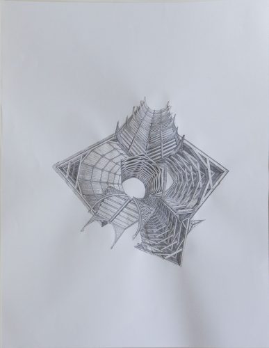 Two collages celebrating English open timber beam construction: roof trusses, vaults, collar braces, and beams reconstructed into fractal-like volumes.